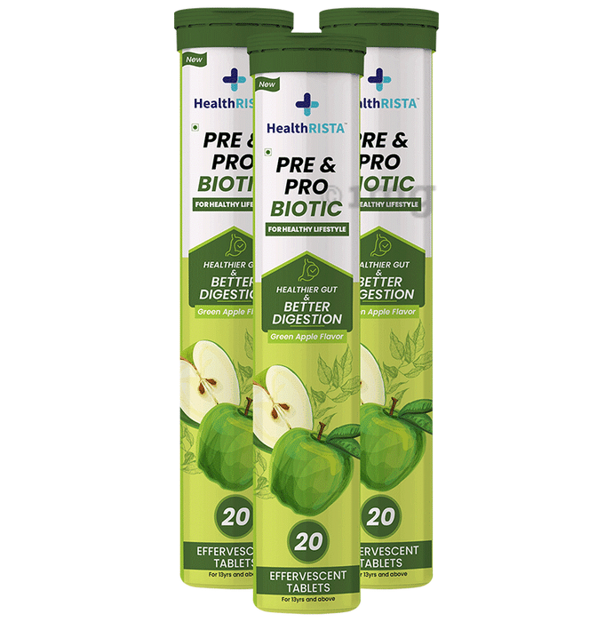Healthrista Pre & Pro Biotic Effervescent Tablet Green Apple is a dietary food supplement formulated with a combination of probiotics and prebiotics to support digestive balance, gut flora health, and immune function. Each green apple-flavoured effervescent tablet delivers a structured dose of beneficial bacteria along with fructooligosaccharides (FOS), offering convenient daily support for gastrointestinal wellbeing and natural microbial balance.