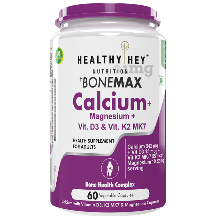Healthy Hey Nutrition Bonemax with Calcium, Magnesium, Vit D3 & K2-7 | For Bone Health | Capsule