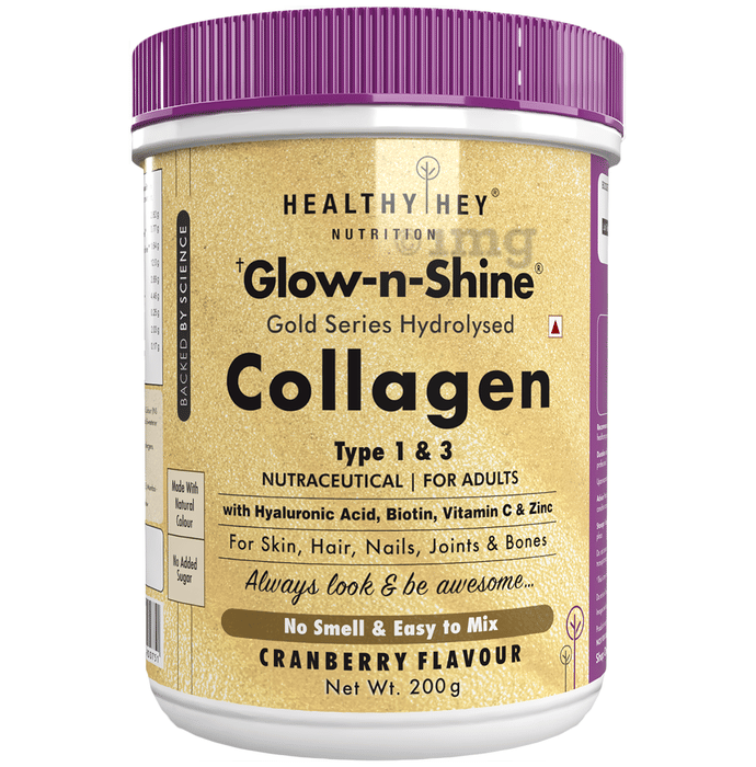 Information about Healthy Hey Nutrition Glow-N-Shine Gold Series Hydrolysed Collagen Type 1 & 3 for Skin, Hair, Nails, Bones & Joints | For Adults | Flavour Cranberry