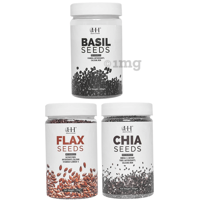 Information about Healthy & Hygiene Combo Pack of Chia Seeds 200gm, Basil Seeds 200gm & Flax Seeds 190gm