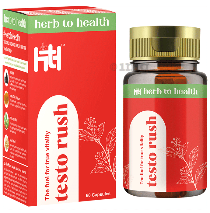 Herb to Health Testo Rush Capsule is an Ayurvedic formula that may help to support vitality, strength, and overall energy levels. This supplement may help in enhancing stamina and promoting better physical and mental resilience. Enriched with a potent blend of herbal ingredients like Shilajeet, Swarn Gold Bhasam, and Ashwagandha, it may contribute to improved performance and confidence.