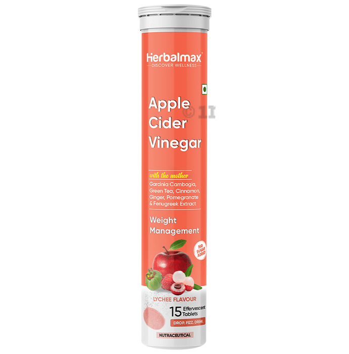 Herbal Max Apple Cider Vinegar with the Mother Effervescent Tablet (15 Each) Lychee No Added Sugar