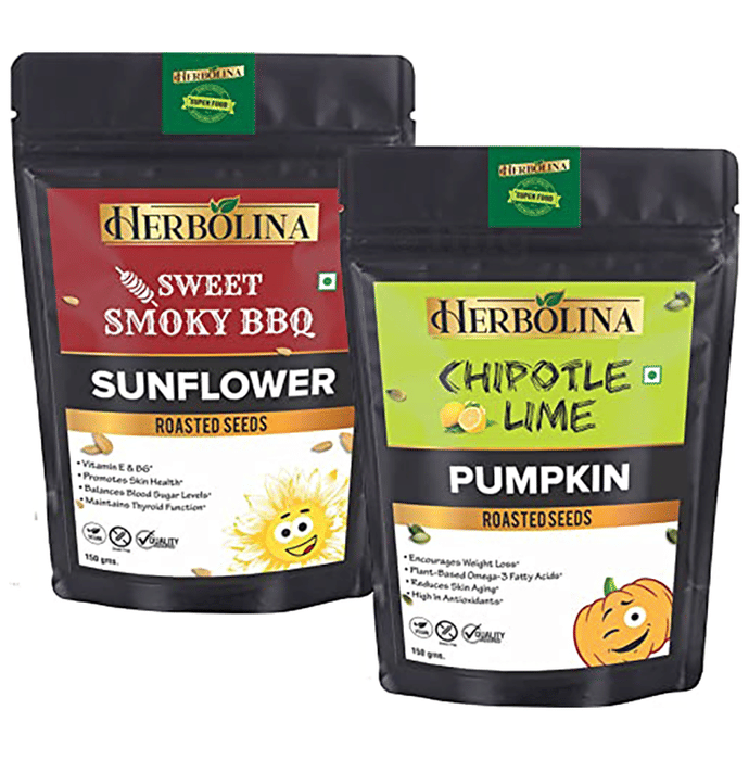 Information about Herbolina Combo Pack of Pumpkin & Sunflower Roasted Seeds (150gm Each) Chipotle Lime & Sweet Smoky BBQ