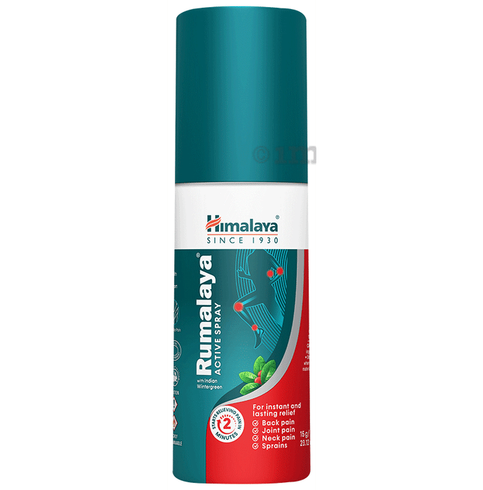 Himalaya Rumalaya Active Spray is an Ayurvedic proprietary medicine crafted to help provide instant and lasting relief from pain. Enriched with a unique blend of time-tested herbs, including Indian Wintergreen, it may provide targeted relief from back pain, neck pain, joint pain, muscular pain, sprains, and strains. The innovative spray design ensures easy application and fast action, making it an ideal choice for acute musculoskeletal discomforts and sports injuries. The product is formulated for external use and complies with Ayurvedic principles, ensuring both efficacy and safety.