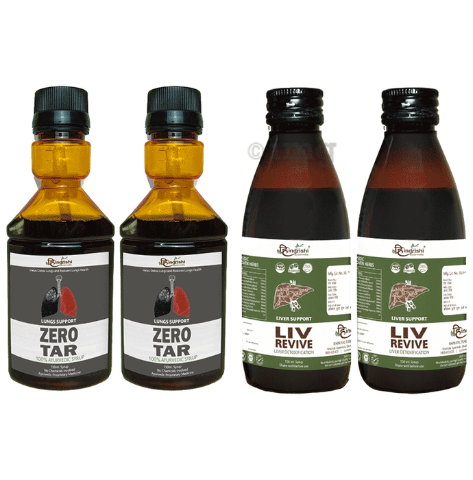 Hindrishi Ayurveda Combo Pack of 2 Bottles of Zero Tar Ayurvedic Syrup & 2 Bottles of Liv Revive Liver Detoxification Syrup (150ml Each)
