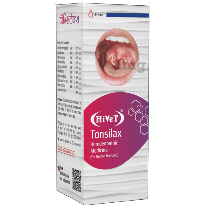 Hivet Tonsilax Drop is a formulation intended to be used in throat discomfort and related symptoms as advised.