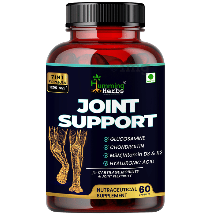Humming Herbs Joint Support Capsules is a supplement that may help support joint health and flexibility. Each capsule contains a 7-in-1 blend, including Glucosamine, Chondroitin Sulphate, MSM, and Hyaluronic Acid, which can help maintain joint function. Collagen Peptides are included to assist with mobility, while Vitamin D3 and Vitamin K2 may help support bone health and calcium regulation. This formula is designed for those looking to maintain an active lifestyle as part of their daily routine