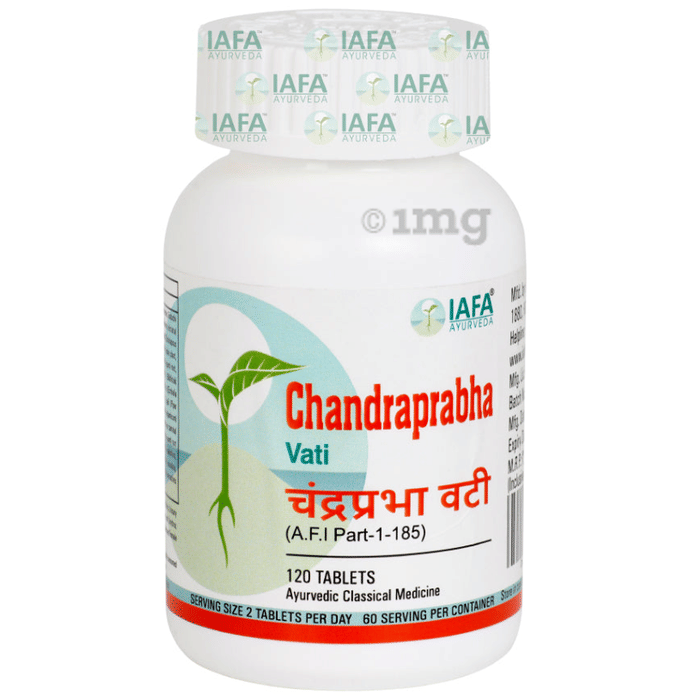 Iafa Chandraprabha Vati Tablet is a classical Ayurvedic solution used in ancient Ayurveda for both men and women. In men, it is used as a herbal remedy for urinary tract infections, emotional stress, blood sugar, and complications like blood sugar neuropathy. In females, it helps overcome general weakness, reduce pain in the lower back, aids management of ovarian cysts, irregular mensuration, urinary tract infections, and lack of glow on the face.