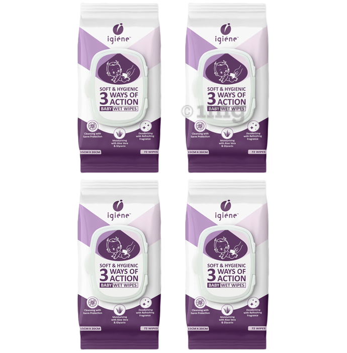 Igiene Soft & Hygienic 3 Ways of Action Baby Wet Wipes (72 Each) 15cm x 20cm