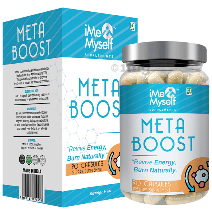 iMeMyself Meta Boost Capsule is a dietary supplement crafted to support energy metabolism, satiety, and insulin sensitivity through a precise blend of herbal extracts and functional nutrients. Designed for individuals seeking an active lifestyle, Meta Boost combines botanical ingredients like Garcinia cambogia, cinnamon bark, and turmeric root with metabolic cofactors such as Alpha Lipoic Acid and Chromium Picolinate. The combination may contribute to improved calorie processing, fat metabolism, and thermogenic activity, helping users feel energised throughout the day. With each serving, it can complement efforts to maintain glucose balance and appetite control, supporting overall well-being and vitality.