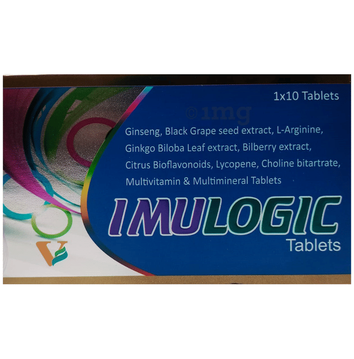 Imulogic Tablet is a multi-nutrient supplement formulated with a blend of vitamins, minerals, amino acids, and botanical extracts including ginseng, grape seed, ginkgo biloba, and bilberry. It may help provide antioxidant support, assist in maintaining energy, and support daily nutritional requirements. Enriched with vitamin C, vitamin D3, zinc, and bioflavonoids, the formulation can be beneficial for managing oxidative stress and maintaining overall nutritional balance.