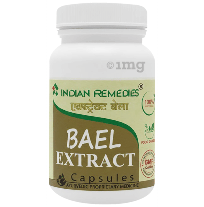 Indian Remedies Extract of Bael Capsule Indian Remedies Extract of Bael Capsule is an ayurvedic medicine which has no side effects as it is made up from 100% natural ingredients. This product is made after a thorough medical research and has many benefits which are related to improving overall immunity of the body. Key Ingredients: Bilva (Bael) Key Benefits: