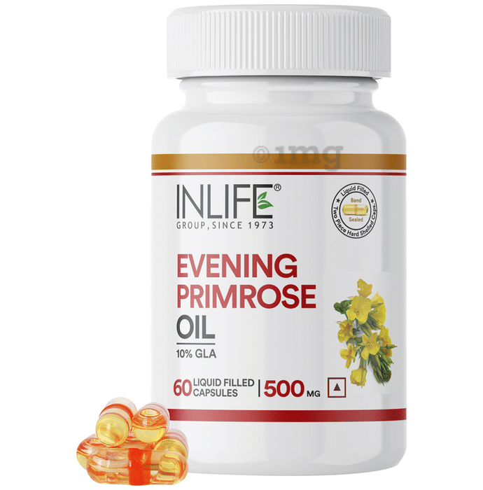 Inlife Evening Primrose Oil Capsule Evening Primrose Oil is unique in its way and one of the few oils containing high levels of gamma-linolenic acid (GLA). GLA is essential for good health because its derivatives influence every organ in the human body. INLIFE Evening primrose oil capsules contain a high measure of a fatty acid called GLA. It contains more than 10% GLA which is highest amongst any other brand offering. Also, evening primrose oil capsules are hard-shelled gelatin liquid-filled capsules which have many advantages over soft gels.