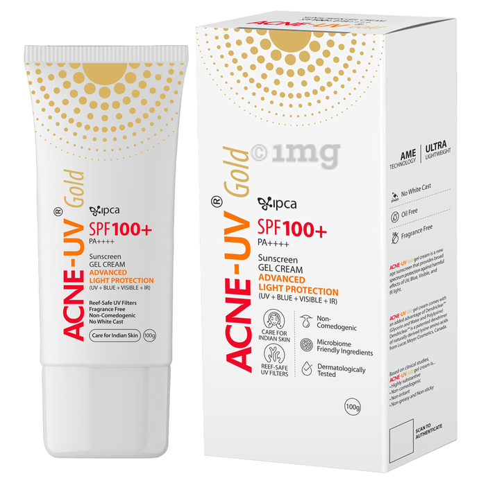 Ipca Acne-UV Gold Advanced Light Protection Sunscreen Gel Cream SPF 100+ PA++++