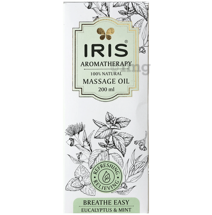 - Take a few drops of Iris Aromatherapy Breathe Easy Massage Oil onto your hand and gently massage it onto your chest, neck, and back using smooth circular motions
