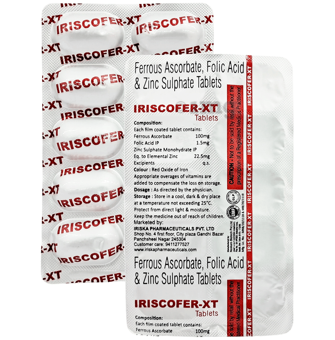 - Iriscofer XT Tablet is beneficial for providing iron and other nutrients for foetus development in pregnant women. It contains Folic acid which is beneficial for the production of red blood cells and the development of the babys neural tube into the brain and spinal cord. It also contains Ferrous ascorbate which helps in managing iron levels.