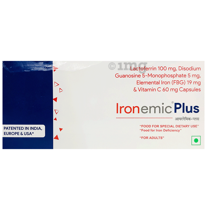 Ironemic Plus Capsule is designed to help maintain iron reserves with a unique combination of Lactoferrin, Ferrous Bisglycinate (FBG), Vitamin C, and Disodium Guanosine 5-Monophosphate. Formulated for adults, this patented product can help support iron absorption and energy levels while offering food-based support for iron deficiency.