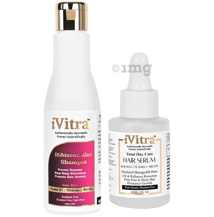 iVitra Combo Pack of Hibiscus-Aloe Shampoo (200ml) & Total Day Care Hair Serum (30ml)