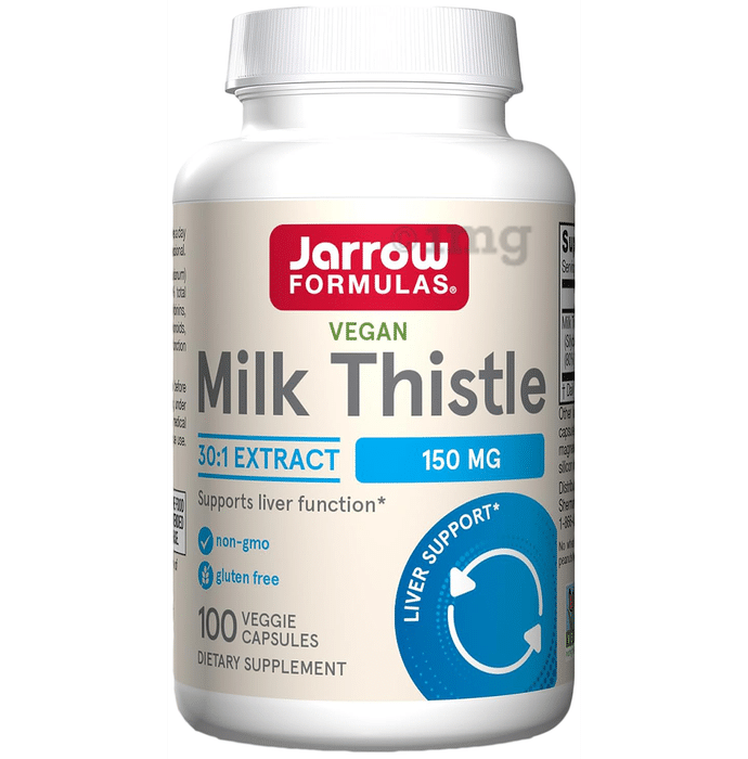 Jarrow Formulas Milk Thistle 150 mg Capsule It is a dietary supplement formulated with milk thistle (Silybum marianum) that supports liver functions. It contains 80% of milk thistle seed flavonoids, including isosilybinins, silybinins, silychristin and silydianin. This group of flavonoids, collectively known as silymarin, supports liver function by supporting glutathione levels.