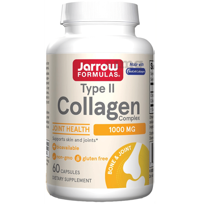 Jarrow Formulas Type II Collagen Complex 1000mg Capsule is a dietary supplement formulation containing BioCell Collagen, a patented, low molecular weight, water-soluble glycosaminoglycan complex derived from chicken sternum cartilage. The BioCell Collagen may help support joint health and skin elasticity. The chicken sternum collagen extract supports the strength and resilience of connective tissues, including bones, joints, and skin. The combination helps support overall joint comfort and skin health for both men and women.