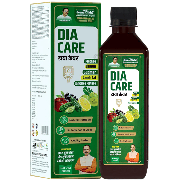 Jeena Sikho Dia Care Juice is an Ayurvedic proprietary formulation prepared with a blend of Karela, Amla, Jamun, Methi, Neem, Gudmar, Dalchini, and other botanicals. This herbal combination can help support sugar wellness, digestive balance, and metabolic strength naturally. The presence of fruit juices and seed extracts may contribute to maintaining energy levels, pancreatic wellness, and internal equilibrium. Designed for regular use, this formulation can also support detoxification processes and overall immune resilience as part of a balanced lifestyle.