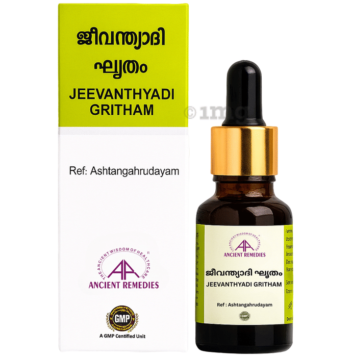Jeevanthyadi Cream Gritham are an Ayurvedic proprietary formulation designed to help support eye care. Enriched with traditional ingredients like Holostemma ada-kodien, Piper longum, and Anethum graveolens, these drops are crafted for convenient nighttime application. Packaged in glass bottles for safe heating, this formulation is suitable for a supportive eye care routine under the guidance of a physician.