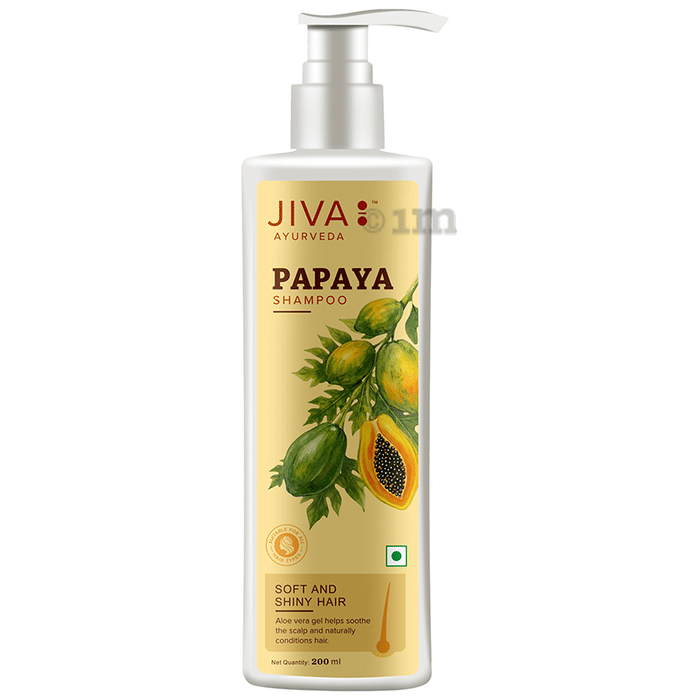 - Jiva Papaya Shampoo is indicated to restore the natural lustre and colour of the hair, potentially enhancing shine and volume