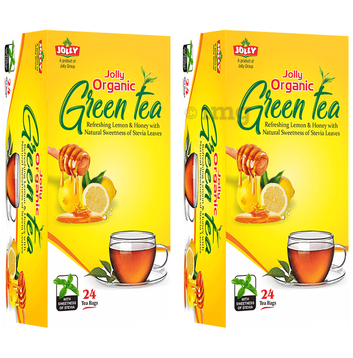 Jolly Organic Green Tea Bag (24 Each) with Refreshing Lemon & Honey with Stevia Leaves