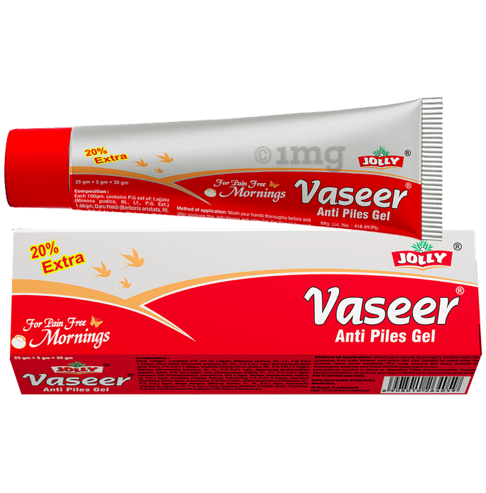 Jolly Vaseir Anti Piles Gel is fast acting formula which is beneficial for all kinds of piles and is prepared from judiciously chosen herbs like ritha, naga kesara, kakmachi, majuphal , triphala kilmora, ghrita kumari, nishoth, hirabol, suddha, phitkari. Jolly Vaseir Capsule consist of herbs which are 100% ayurvedic with no side effects.