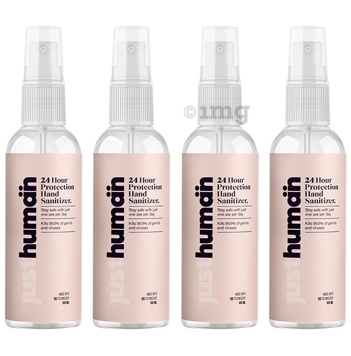 Just Human 24 Hours Hand Sanitizer (100 ml Each) protects from germs without the use of soap and water. Highly recommended for protection against viruses that spread through coughing and sneezing. It helps to protect from harmful bacteria and germs and keeps hands clean and fresh.