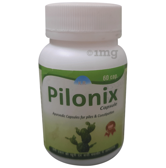 K.R. Pilonix Capsule is an Ayurvedic formulation prepared in capsule form. It contains a blend of classical herbal and mineral ingredients such as Loh Bhasma, Tamra Bhasma, Saunth (Zingiber officinale), Dhanti mool (Baliospermum montanum), Kali mirch (Piper nigrum), and Pipal chhoti (Piper longum), processed alongside agents like Vanshlochan and Sendha namak. These ingredients may assist in supporting bowel regularity and easing local discomfort when taken as part of a supervised regimen.