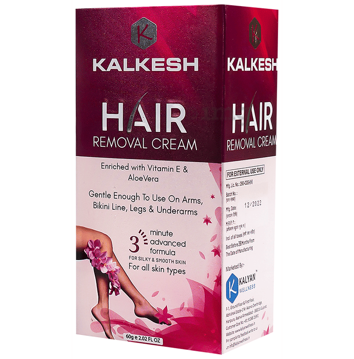 Kalkesh Hair Removal Cream helps to get silky, smooth skin. Enriched with vitamin E and aloe vera, this gentle cream is safe for use on arms, bikini lines, legs, and underarms. It is suitable for all skin types and helps provide a silky, smooth finish after use. The new fragrance technology also ensures that there is no lingering malodour, leaving you feeling fresh and confident.