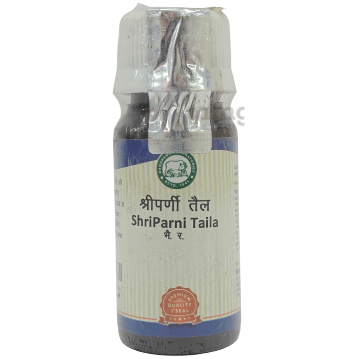 Kamdhenu Laboratories Shriparni Taila is a herbal oil intended for external application to support breast care. It contains herbal ingredients traditionally used to maintain skin tone and texture.