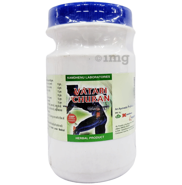 Kamdhenu Laboratories Vatari Churna is an Ayurvedic powder that helps alleviate physical pains and aches. It may soothe muscular and joint pain and stiffness. The powder’s anti-inflammatory properties can ease vitiated Vata to provide relaxation of swelling and inflammation.