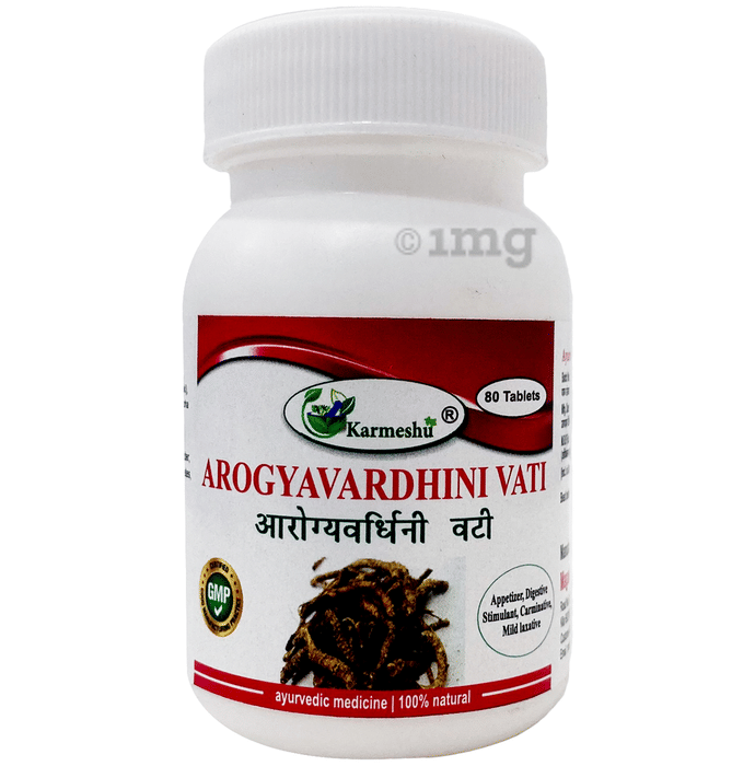 Karmeshu Arogyavardhini Vati is an Ayurvedic blend that may help to support internal balance and detoxification. It combines a variety of traditional herbs and mineral preparations aimed at supporting digestion, metabolic health, and overall bodily functions. This formulation may be suitable for maintaining general wellness and helping body purification processes.