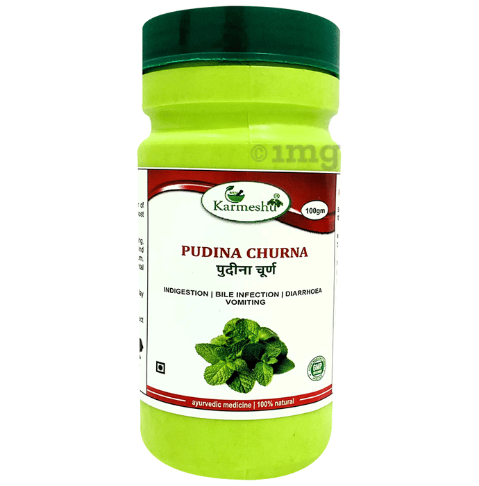 Karmeshu Pudina Churna is an Ayurvedic herbal powder formulation containing dried Mentha sylvestris leaves. The Mentha sylvestris can support healthy digestive function by helping ease occasional indigestion and mild stomach discomfort. The natural peppermint constituents may help support relief from wind, flatulence and gastrointestinal unease. The mentha profile can support occasional comfort in mild dizziness associated with digestive imbalance. The combination of these ingredients helps support overall digestive wellness and a sense of comfort when taken as directed, making it suitable for inclusion in a balanced dietary routine.
