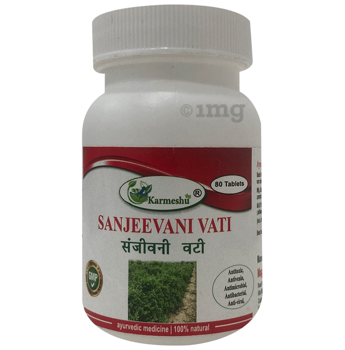 Karmeshu Sanjeevani Vati Tablet is an Ayurvedic formulation crafted with a blend of herbs that may help support immune health and metabolic function. It can be used to help manage elevated body temperatures and infections. This supplement may work to help strengthen the body’s natural defence mechanisms while assisting digestion and detoxification.