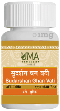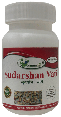 Karmeshu Sudarshan Vati Tablet is a comprehensive Ayurvedic formulation prepared using a blend of over 40 herbs that may help in managing high body temperatures, seasonal ailments, digestive imbalances, and respiratory discomforts. Enriched with the potential immunity-supporting and detoxifying properties of Triphala, Haridra, Kantakari, and Guduchi, this herbal remedy may help regulate body temperature, support digestive health, and assist the body’s natural defence mechanisms. It can be helpful during seasonal transitions and for individuals prone to allergies or recurrent infections.