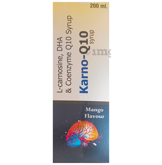 Karno-Q10 Syrup is a health supplement containing L-Carnosine, DHA, and Coenzyme Q10 in a flavoured syrup base. This combination can help provide essential nutritional support for energy metabolism, antioxidant activity, and overall cellular function. The presence of DHA can help contribute to balanced nutrition, while L-Carnosine and Coenzyme Q10 can support healthy energy processes and protection against oxidative stress. With a convenient mango-flavoured liquid form, this syrup can be suitable as a supplementary addition to daily dietary intake.