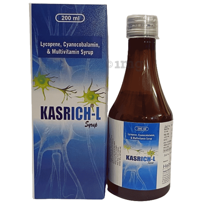 Kasrich Syrup is a dietary supplement that contains vitamins A1, A2, B1, and B2. It is formulated to provide essential vitamins to support overall health and well-being.