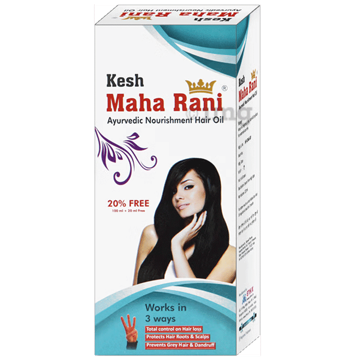 Kesh Maha Rani Ayurvedic Hair Oil is a patented ayurvedic medicinal oil which is helpful for various hair problems like hair fall, dandruff, and premature greying of hair. It helps to protect hair roots and the scalp. It is effective in repairing damaged hair and promotes healthy and long hair.