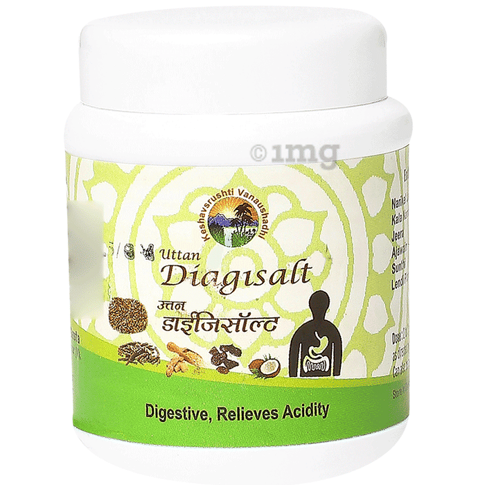 Keshavsrushti Vanaushadhi Uttan Daigesalt is effective for digestion and relieves hyperacidity and gases. It is helpful when regularly used.