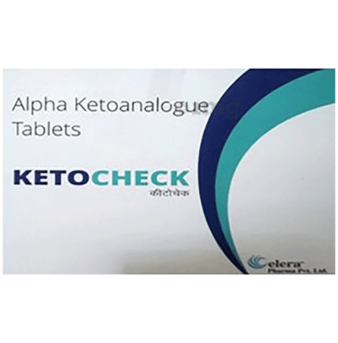 Ketocheck Tablet is a rich source of alpha-keto analog and essential amino acids that help in maintaining normal functions of the body. It is used in the prevention of deficient protein metabolism and helps in curing chronic renal insufficiency. It is generally given to the patients with low glomerular filtration rate (GFR).