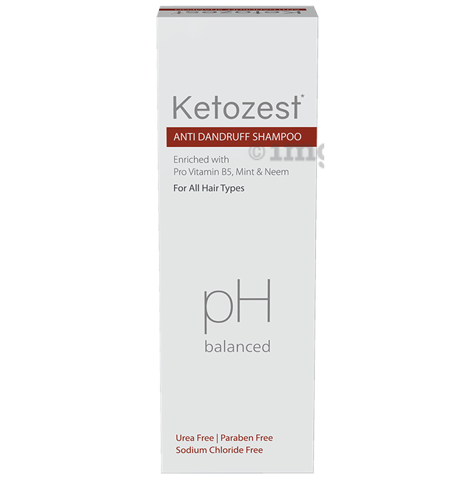 Ketozest Anti Dandruff Shampoo fights against severe dandruff that causes dryness, irritation, and itching in the scalp. It works on the scalp's surface level, gets to the root of dandruff, and eliminates the fungus. It contains Ketoconazole 2.1%, a powerful dandruff-fighting active ingredient. The shampoo washes away tough dandruff flakes and gives the hair a vibrant and refreshed feel. It also allows the pores to open up so the scalp can breathe freely. The shampoo works by reducing fungal growth on the scalp. It reduces dandruff and the inflammation associated with dandruff, relieving scalp redness and itching. This odour-free shampoo's targeted action specifically targets the underlying cause of dandruff, yet it is pleasantly gentle to the hair. It helps strengthen the hair roots and nourish them while infusing extra conditioning effects that keep hair soft and shiny for a long time post-wash.