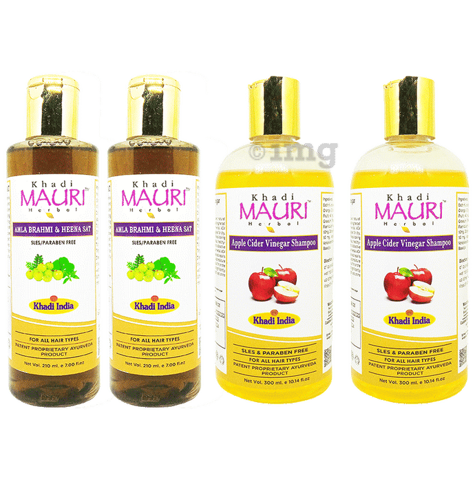 Khadi Mauri Herbal Combo Pack of Amla Brahmi Heena Sat (210ml) & Apple Cidar Vinegar (300ml) Shampoo