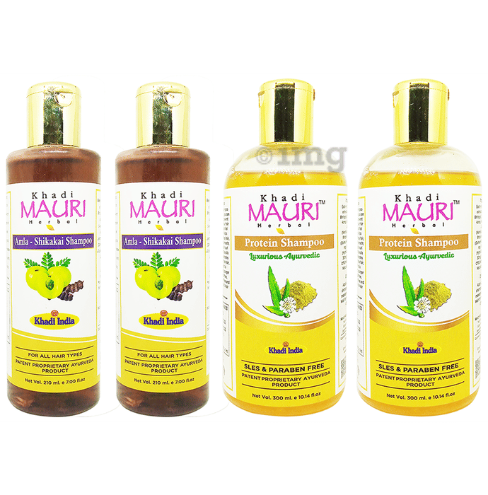 Khadi Mauri Herbal Pack of Amla Shikakai & Protein Shampoo (255ml Each)