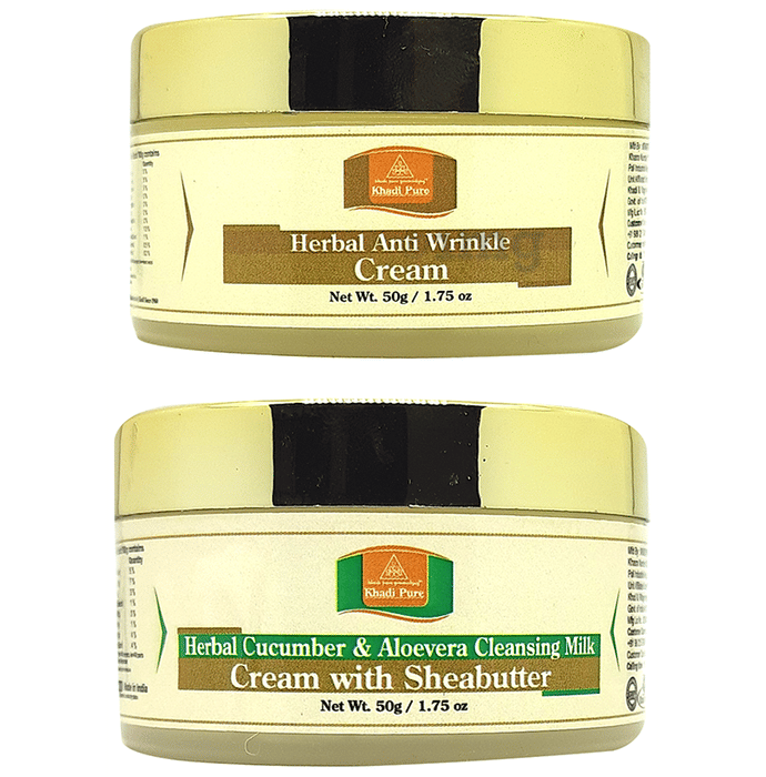 Information about Khadi Pure Combo Pack of Herbal Anti Wrinkle Cream & Herbal Cucumber & Aloevera Cleansing Milk Cream With Shea Butter (50gm Each)