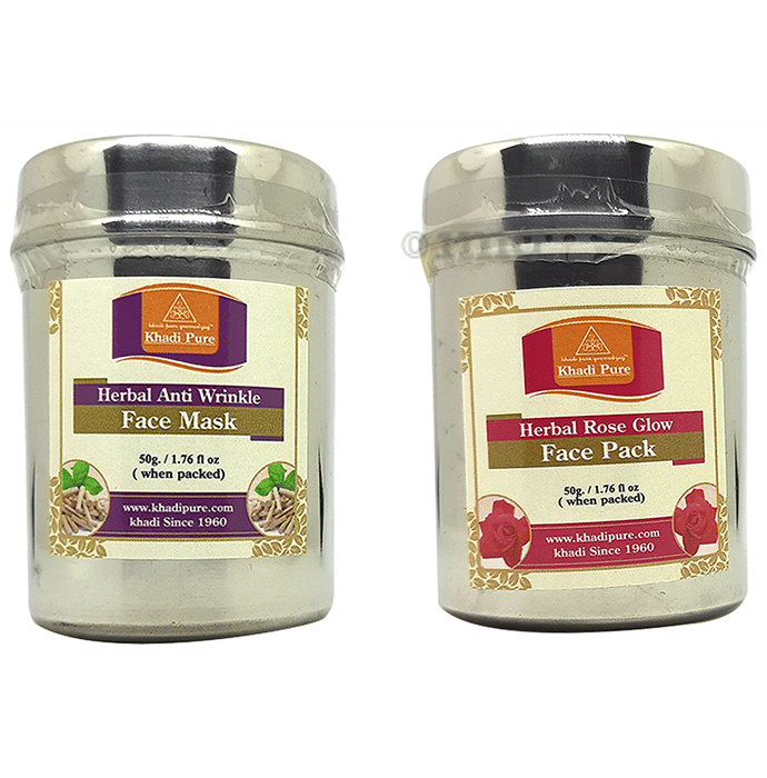 Information about Khadi Pure Combo Pack of Herbal Anti Wrinkle Face Mask & Herbal Rose Glow Face Pack (50gm Each)