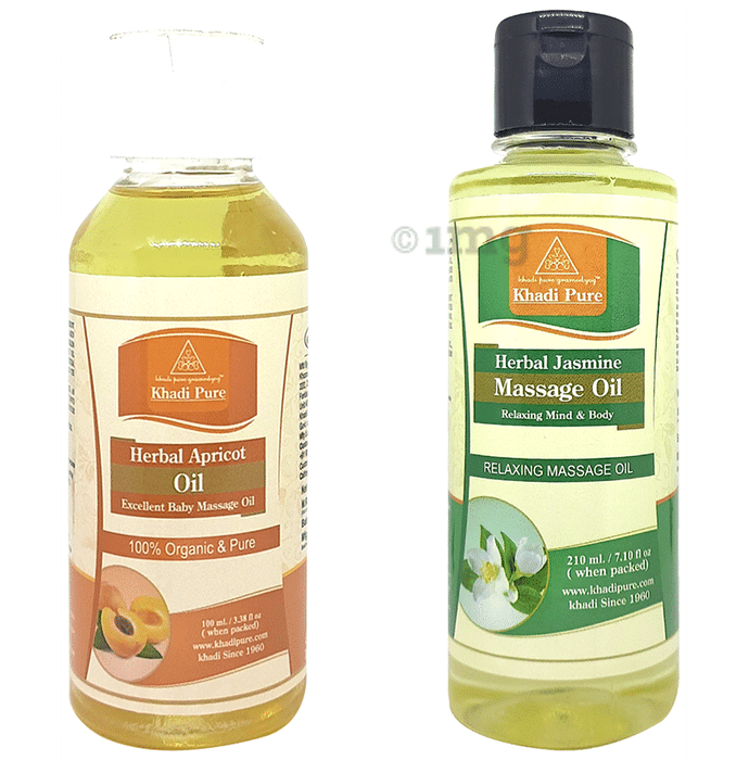 Information about Khadi Pure Combo Pack of Herbal Apricot Oil (100ml) & Herbal Jasmine Massage Oil (210ml Each)