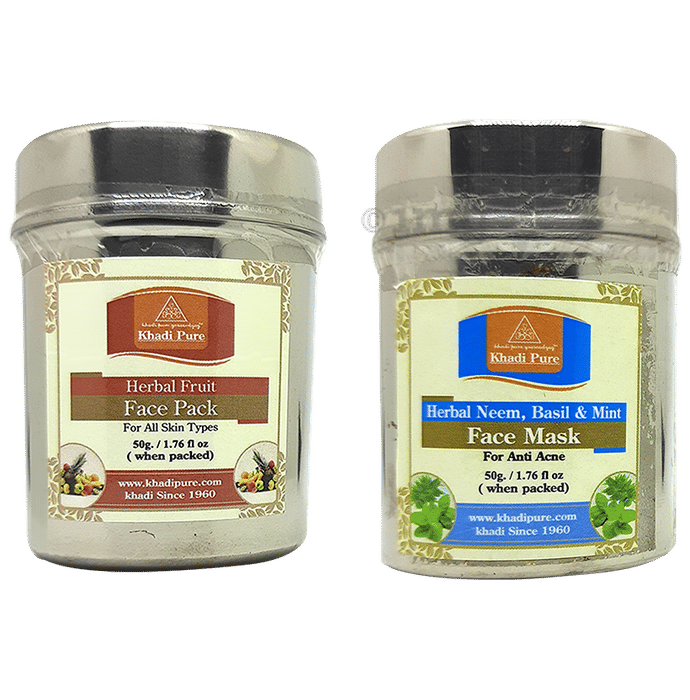 Khadi Pure Combo Pack of Herbal Fruit Face Pack & Herbal Neem, Basil & Mint Face Mask (50gm Each)